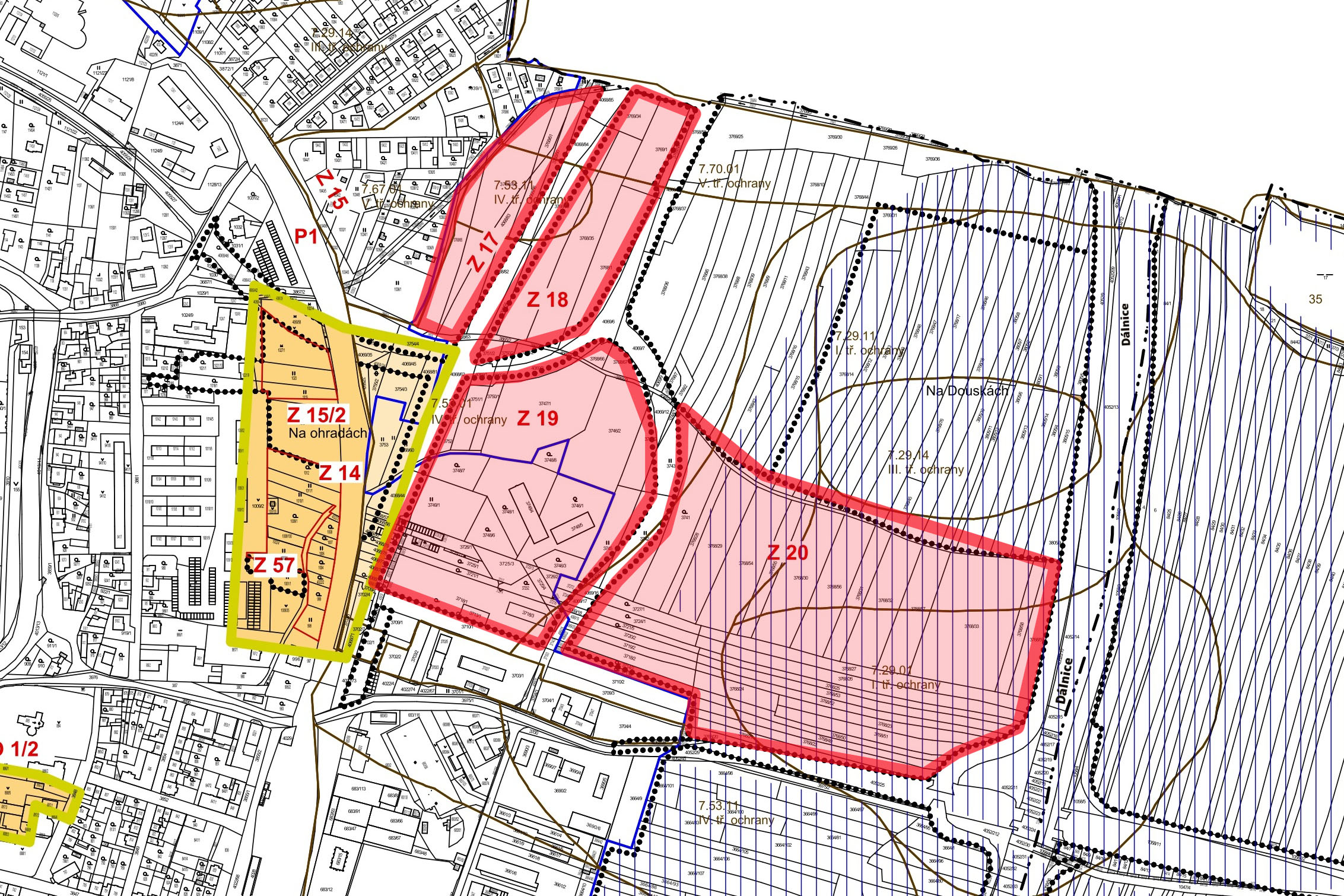 Na výše uvedené lokality navazují v oblasti Na Douskách ještě plochy označované jako Z14, Z17, Z18 a Z19. Tyto lokality jsou sousedními plochami nové silnice, která bude po dokončení železničního koridoru spojovat město s nájezdem na dálnici. Zde již nyní probíhá výstavba autoservisu a v budoucnu je zde počítáno s výstavbou nového sběrného dvora.