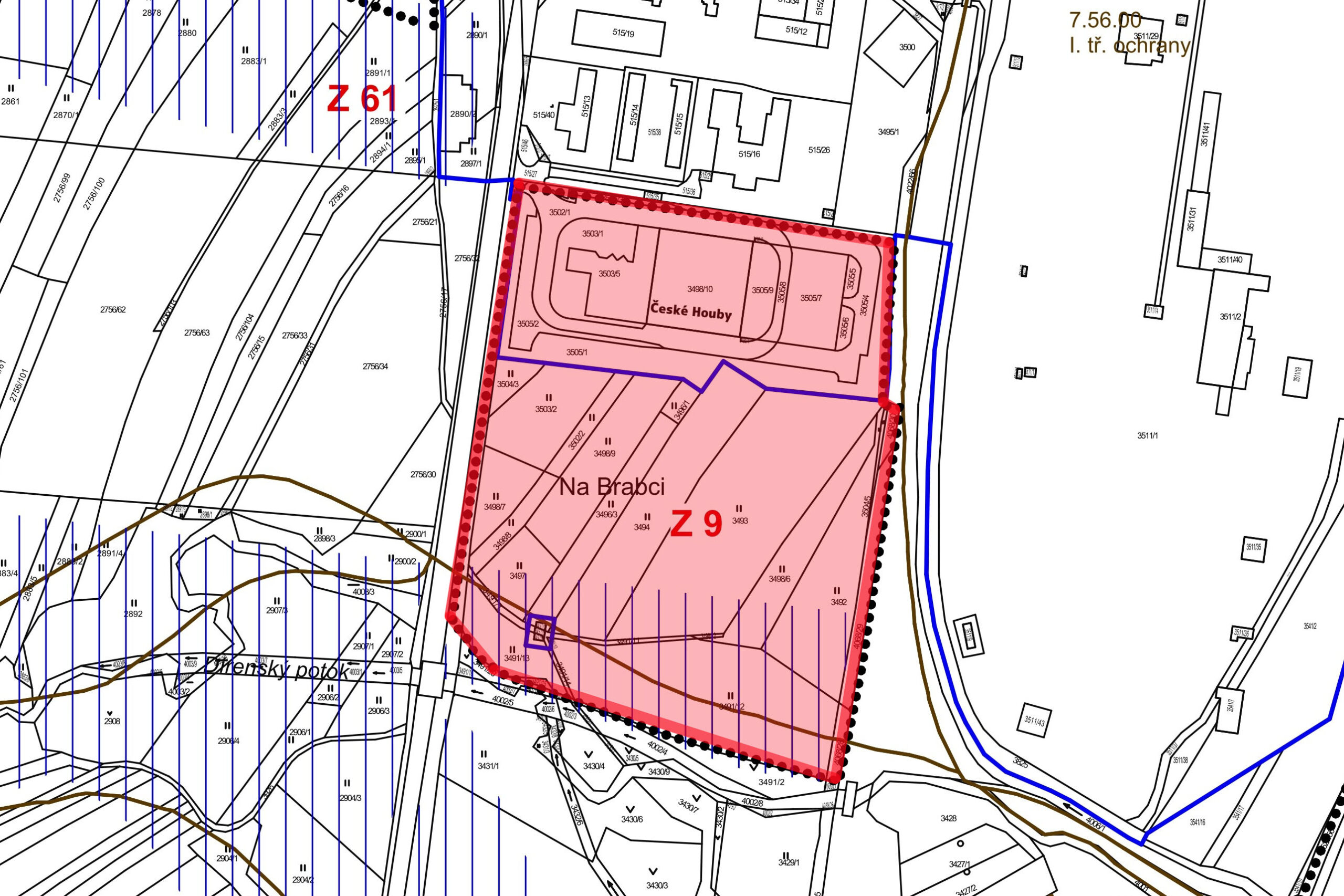 Průmysl se nebude rozrůstat jen podél dálnice, počítá se ale i se zastavěním pole mezi areálem firmy České houby a Dírenským potokem. Stejně jako u dálnice, i zde je nutné respektovat stávající ochranné pásmo silnice I/3, železničního koridoru, elektrického vedení a ochranné pásmo VTL a STL plynovodu.